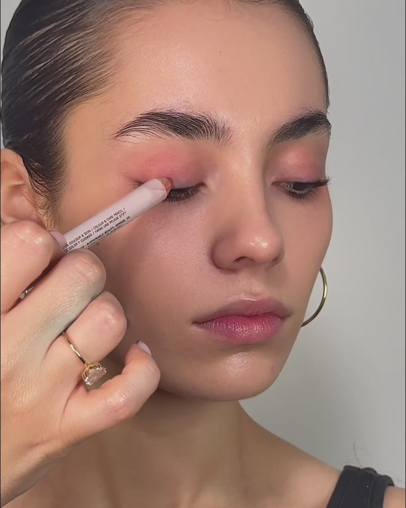 Eclo's 3-in-1 Pencil offers an intuitive and fully modular beauty technique to enhance your lips, cheeks and eyes in a single stroke. Its melt-in, lightweight texture allows you to apply colour with precision, from a delicate veil with a ‘bare skin’ finish to a more pronounced pigment intensity for a bold look.